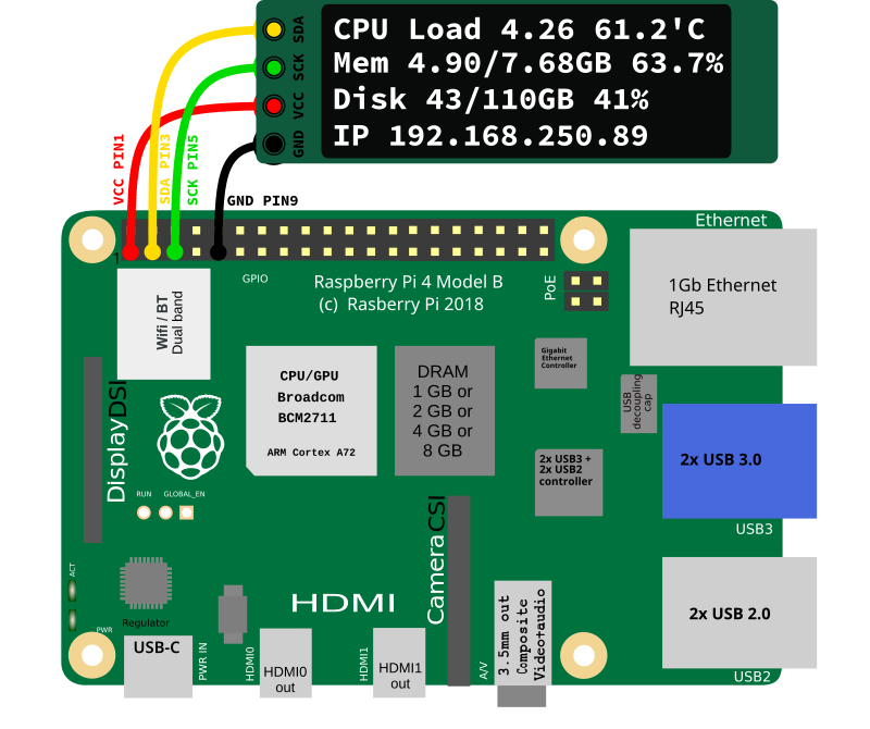 Affichage des stats système sur un écran oled-ssd1306 128x32 via le bus i2c sur raspberry-pi